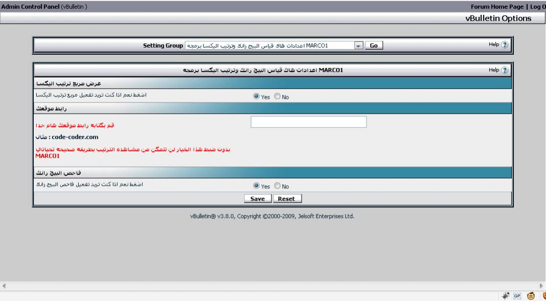 السلام عليكم ورحمة الله وبركاته ماهو هذا الهاك :- يقوم بوضع مربع فحص البيج رانك بموقعك بدون تعديل اي قوالب وايضا مربع ترتيب اليكسا ايضا بدون اي تعديل او تدخل يدوي منك وبلوحه تحكم احترافيه وسوف تجدون اكثر بالصور ملحوظه هامه : لعمل الهاك يتوجب عليك كتابه رابط موقعك بلوحه تحكم الهاك [BIMG]http://www.up.mjawshy.net/uploads/images/mjawshy-bd7c55ff27.jpg[/BIMG] [BIMG]http://www.up.mjawshy.net/uploads/images/mjawshy-50212de3cd.jpg[/BIMG]