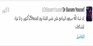 قد اعلن الاعلامى باسم يوسف عبر حسابة على التويتر بعودة برنامج " البرنامج " يوم الجمعة 25 اكتوبر 2013 بعد غياب دام اكثر من شهرين وقال عبر حسابة على " التويتر " >
