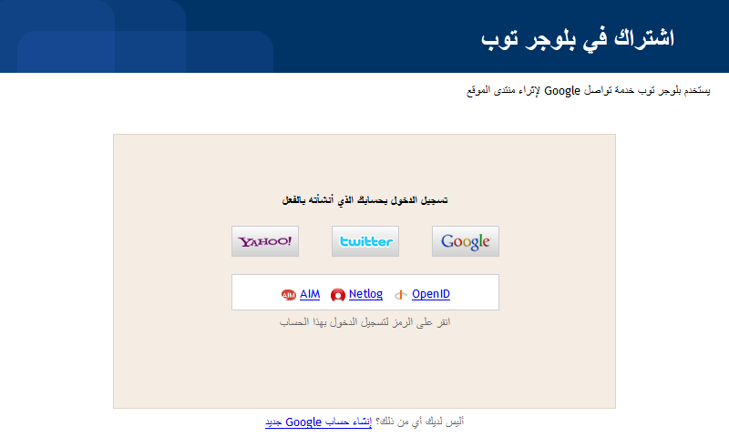 استخدم الحساب المراد فى الصورة مثل حساب تويتر او حساب جوجل او حساب ياهو