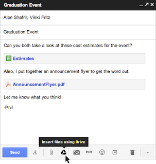 طريقة رائعة لارسال الملفات المرفقة مع رسائل بريد Gmail وذلك بالتكامل مع خدمة جوجل Drive حيث يمكننك ارفاق اي ملف موجود في Drive الى رسالة البريد الالكتروني مباشرة الفائدة من هذه الطريقة هي القضاء على مشكلة ارسال واستقبال الملفات الكبيرة والتي لا تدعمها غالبية خدمات البريد الالكتروني حيث سيتم ادراج رابط للملف وليس ارفاق الملف بالكامل مع الرسالة ايقونة ادراج الملف ستظهر في الايام المقبلة لجميع المستخدمين الشرح الكامل من هنا Google Arabia Blog: Gmail وDrive - طريقة جديدة لإرسال الملفات :ok: الموضوع الأساسي: طريقة رائعة لارسال الملفات المرفقة مع رسائل بريد Gmail المصدر: زيزوووم للأمن والحماية أكثر... |